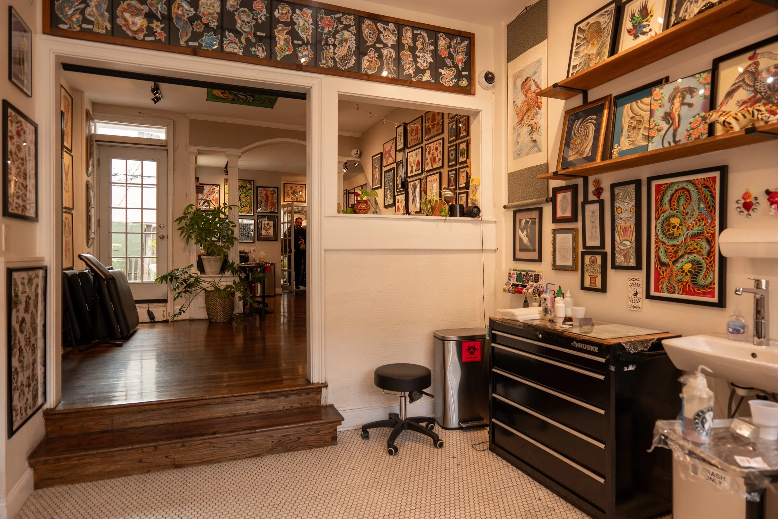At Eastern Pass Tattoo, we combine artistic tradition with a forward-thinking creative spirit. Opened by tattoo veteran Scott Bakoss in 2014, our studio sits in the heart of East Passyunk—an eclectic neighborhood that mirrors our vibe: part old-school, part cutting-edge. We offer a beautiful, private space where clients and artists collaborate closely to create meaningful, boundary-pushing tattoos. Whether you're a seasoned collector or getting your first piece, you'll find a welcoming, art-driven atmosphere rooted in craft, community, and creativity.